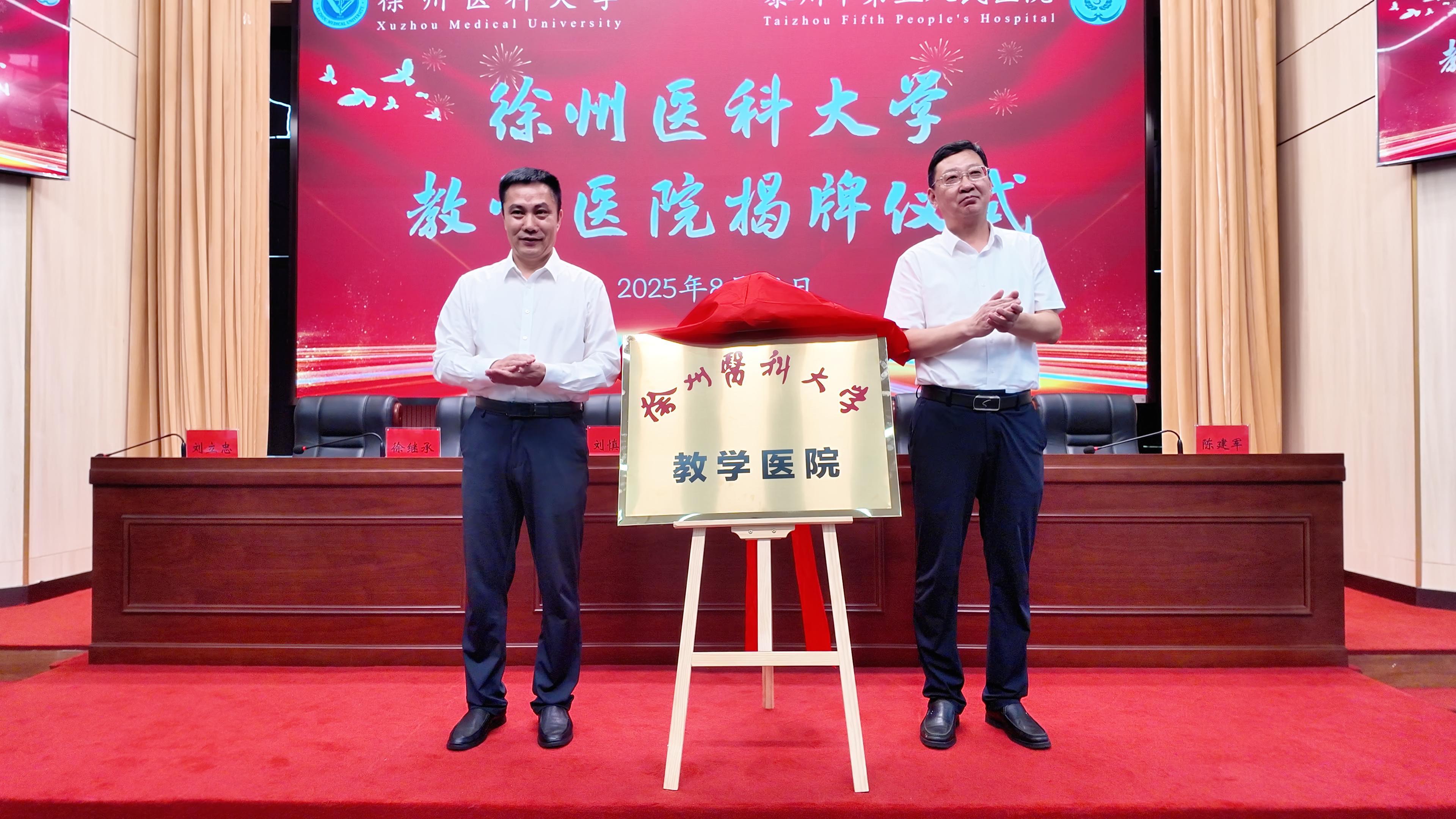8月11日上午,徐州医科大学教学医院揭牌仪式在泰州市第五人民医院举行。校党委常委、副校长刘慎军,泰州市卫生健康委主任全东明,泰州市第五人民医院党支部书记陈建军,我校合发处、教务处等部门负责人,五院领导班子、中层干部以及教师代表等参加活动。揭牌仪式由泰州市卫健委副主任邵骅主持。